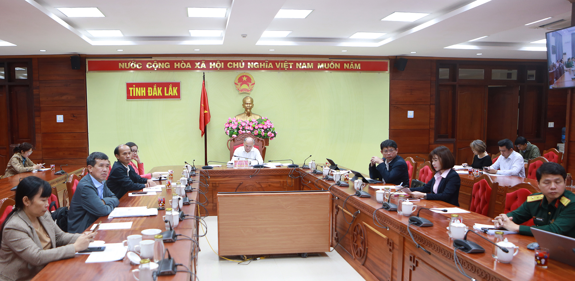 Dự phiên họp tại điểm cầu UBND tỉnh Đắk Lắk có Phó Chủ tịch UBND tỉnh Trương Công Thái và đại diện các ngành liên quan.