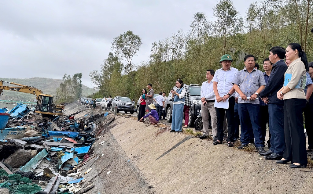 Bí thư Tỉnh ủy Lương Nguyễn Minh Triết cùng đoàn công tác đến kiểm tra khu vực tàu thuyền bị thiệt hại ở phường Sông Cầu.