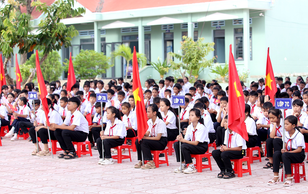 Các em học sinh trường THCS Võ Thị Sáu dự Lễ khai giảng.