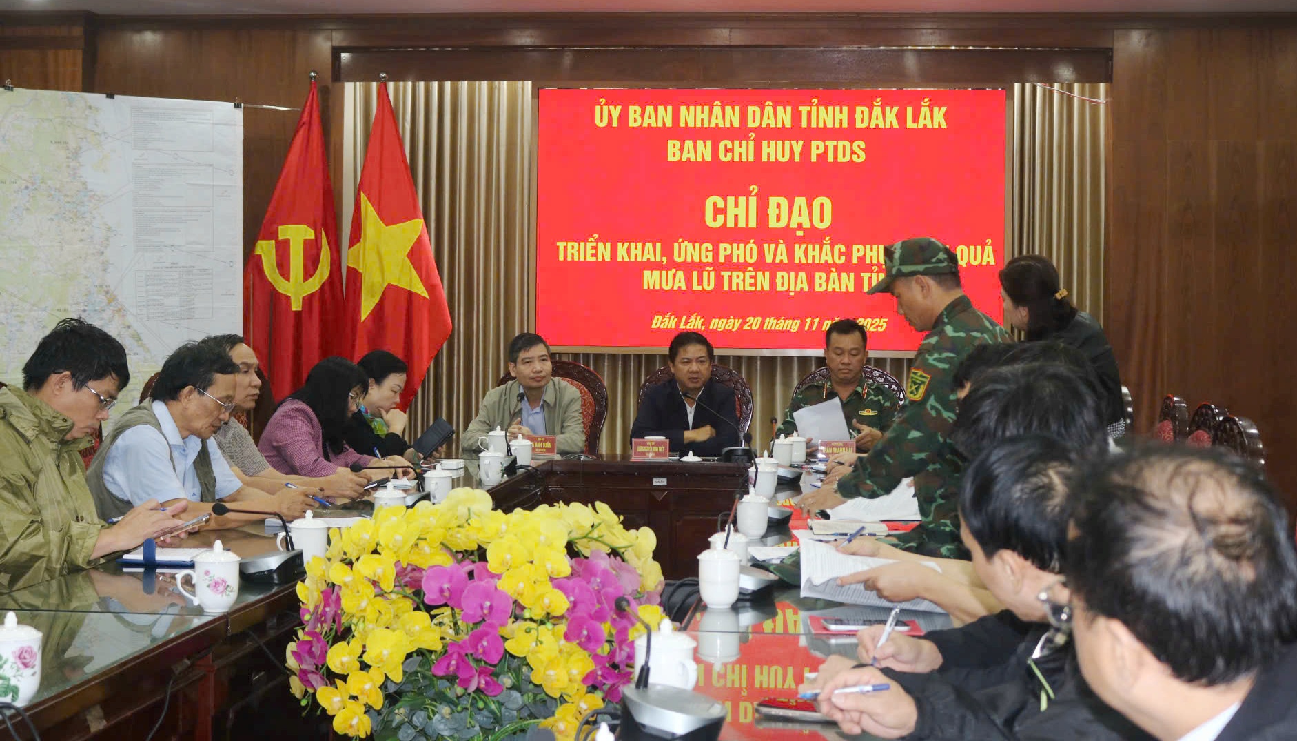 Sáng sớm ngày 20/11, tại phường Tuy Hòa, Ban Chỉ huy phòng thủ dân sự tỉnh Đắk Lắk họp chỉ đạo triển khai, ứng phó và khắc phục hậu quả mưa lũ trên địa bàn tỉnh. Các đồng chí: Lương Nguyễn Minh Triết, Ủy viên dự khuyết Trung ương Đảng, Bí thư Tỉnh ủy; Tạ Anh Tuấn, Phó Bí thư Tỉnh ủy, Chủ tịch UBND tỉnh; Thiếu tướng Trần Thanh Hải, Phó Tư lệnh Quân khu V đồng chủ trì cuộc họp.