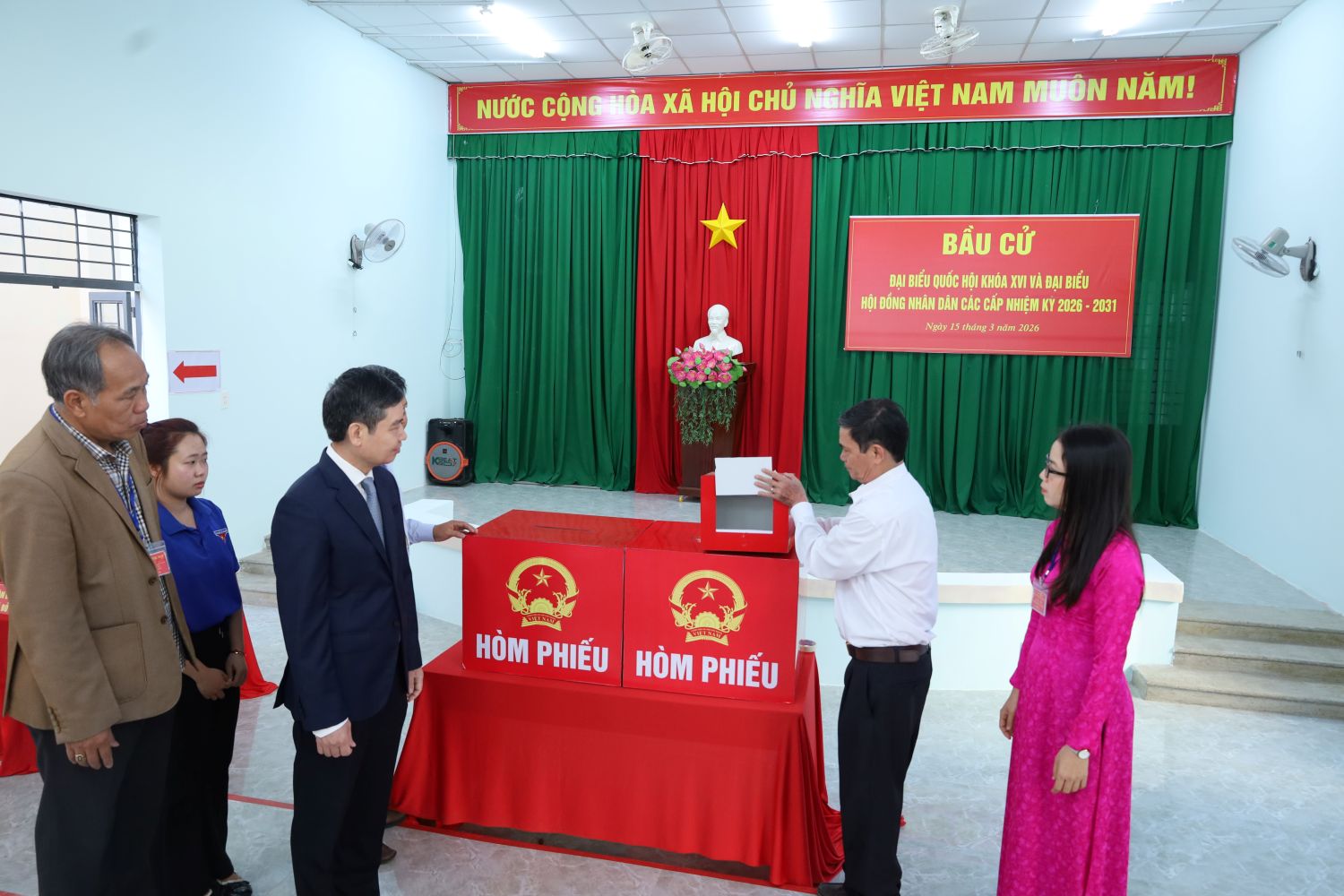 Sáng 15/3, đồng chí Tạ Anh Tuấn, Phó Bí thư Tỉnh uỷ, Chủ tịch UBND tỉnh đã đến dự và tham gia bỏ phiếu bầu cử Đại biểu Quốc hội khoá XVI và đại biểu Hội đồng nhân dân các cấp nhiệm kỳ 2026-2031 tại khu vực bỏ phiếu số 38, phường Buôn Ma Thuột, tỉnh Đắk Lắk.