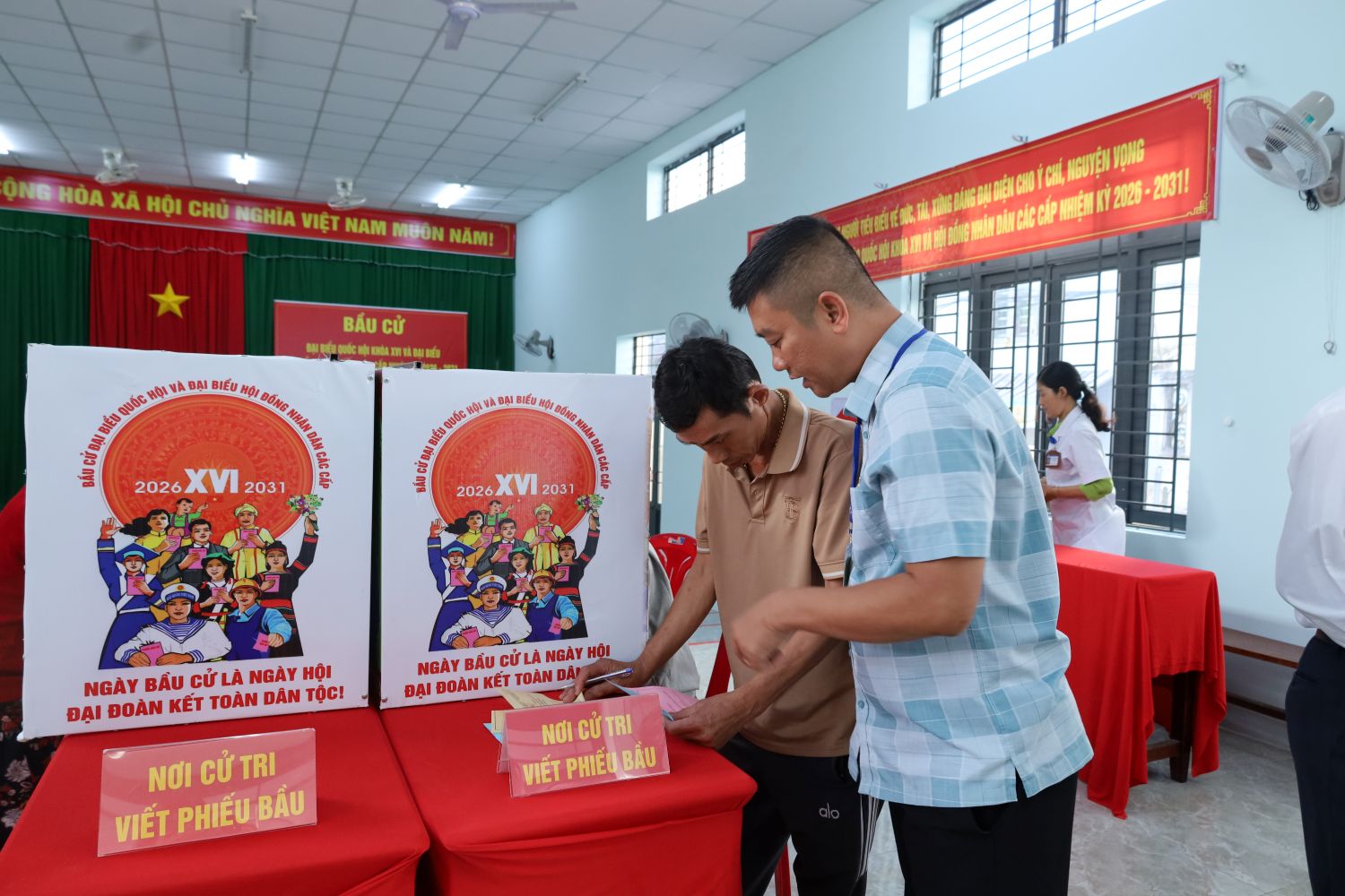 Trong không khí phấn khởi của ngày hội toàn dân, ngay từ sáng sớm, đông đảo cử tri đã có mặt tại khu vực bỏ phiếu để thực hiện quyền và nghĩa vụ thiêng liêng.