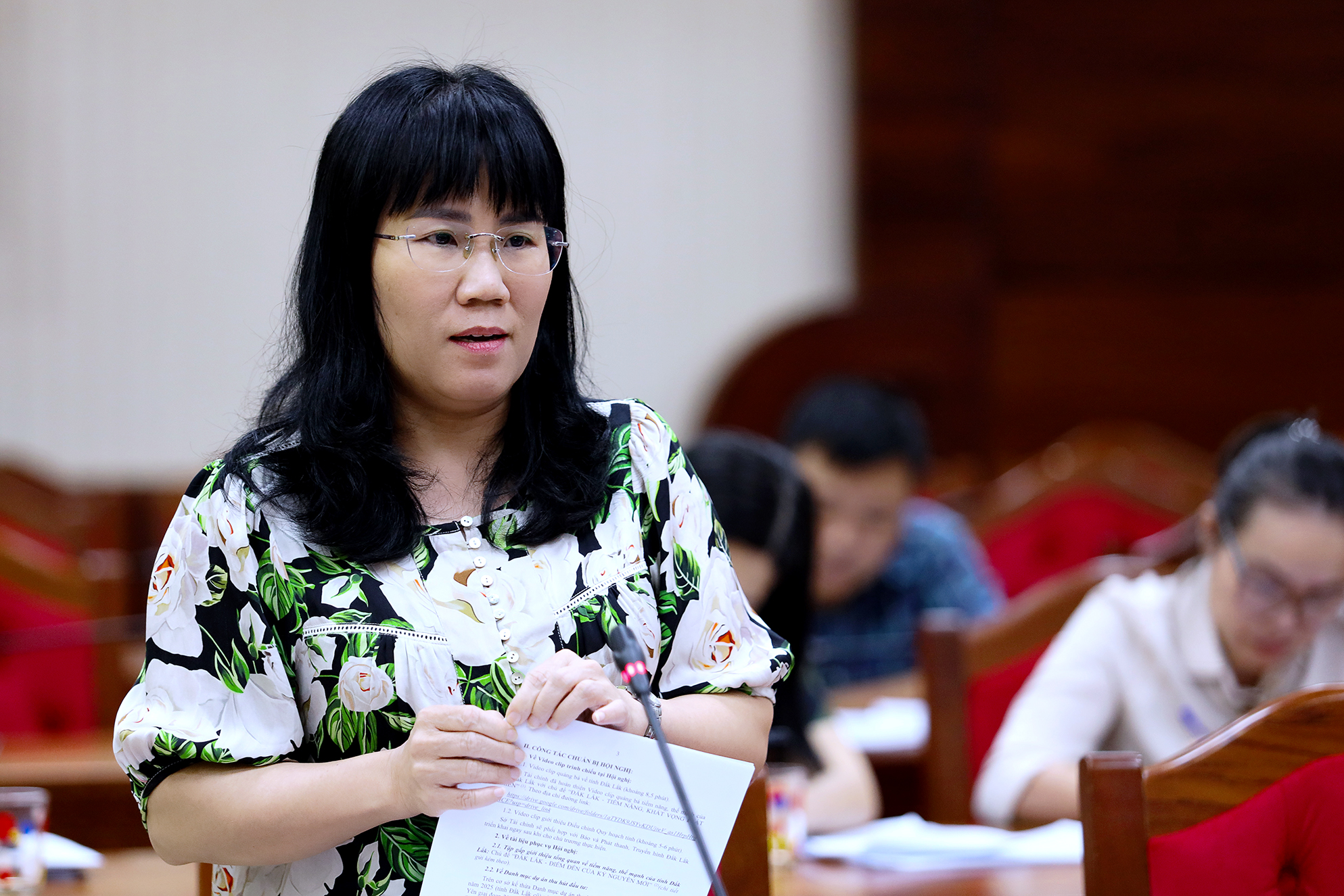 Đồng chí Hồ Thị Nguyên Thảo – Ủy viên Ban Thường vụ Tỉnh ủy, Phó Chủ tịch Thường trực UBND tỉnh phát biểu tại cuộc họp.