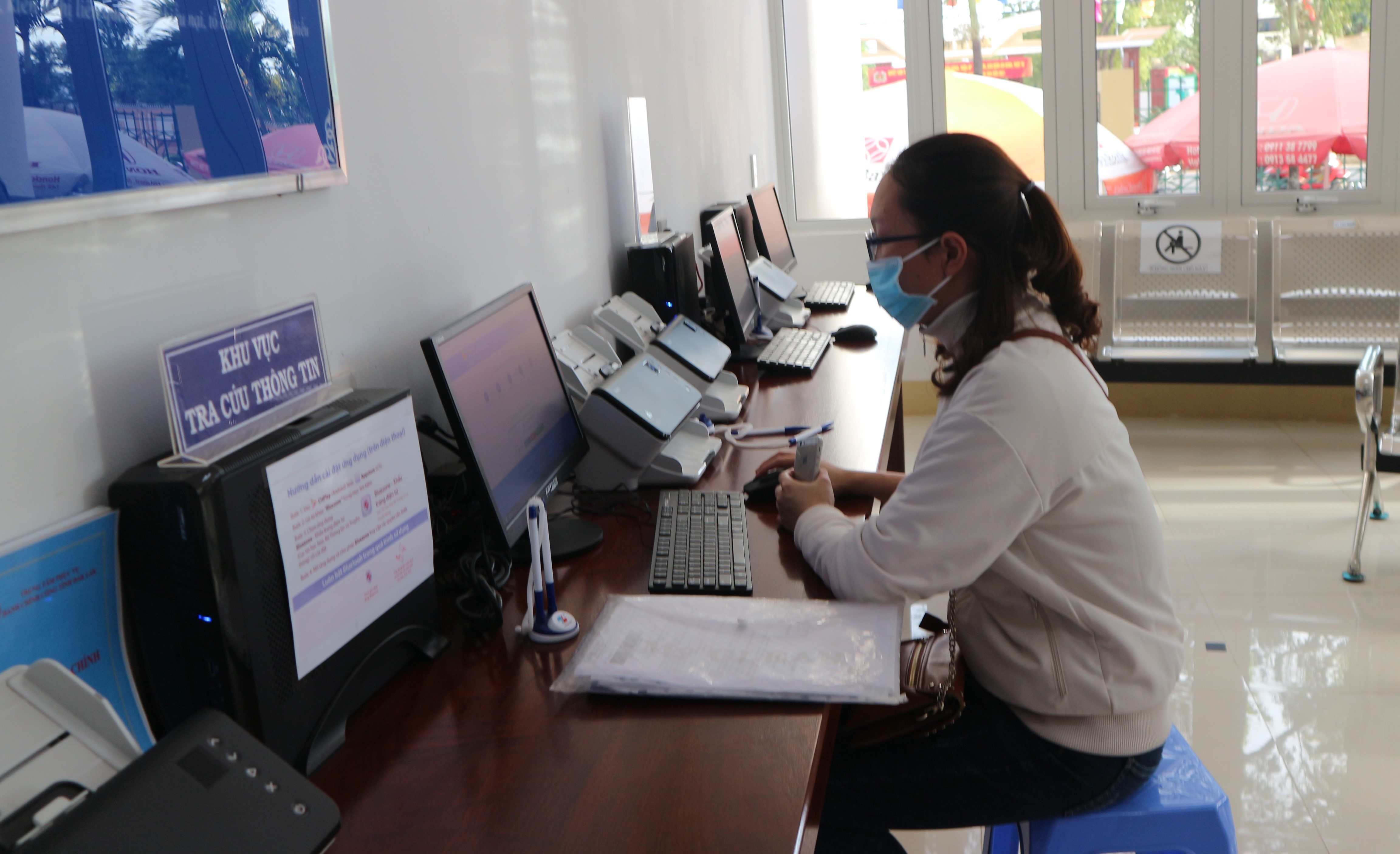 Công dân tra cứu thông tin tại Trung tâm Phục vụ hành chính công tỉnh (Ảnh: B.L)