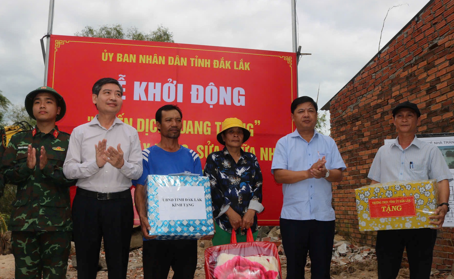 Dịp này, Thường trực Tỉnh ủy, UBND tỉnh tặng quà, động viên gia đình có nhà bị sập và các đơn vị, lực lượng tham gia hỗ trợ xây dựng nhà ở cho người dân. Ủy ban Mặt trận Tổ quốc Việt Nam tỉnh Đắk Lắk phát động ủng hộ chương trình “Nhà ở cho đồng bào vùng lũ”, kêu gọi các cơ quan, doanh nghiệp, tổ chức, cá nhân, các nhà hảo tâm trong và ngoài tỉnh cùng sẻ chia, hỗ trợ đồng bào vùng lũ vượt qua thời điểm khó khăn giúp bà con sớm ổn định đời sống.