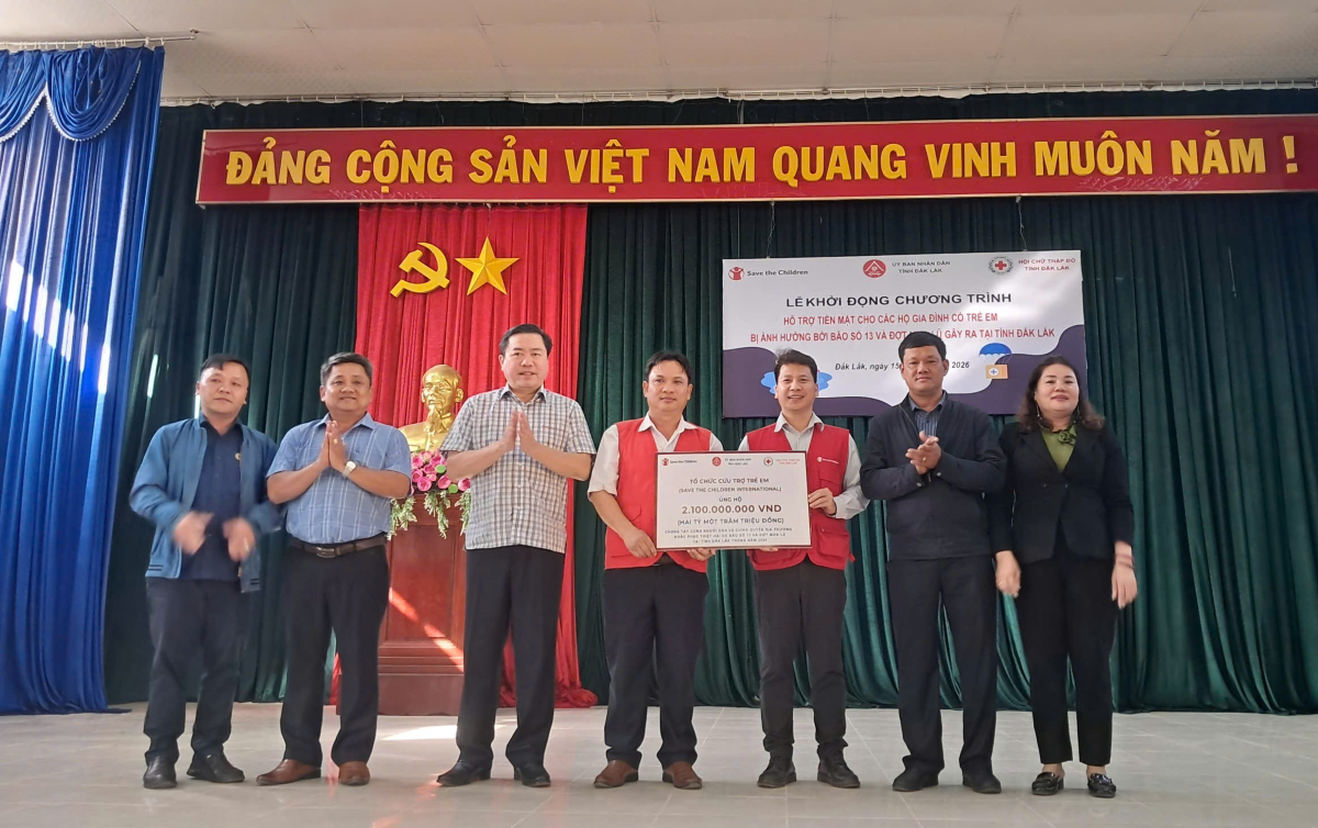 Tổ chức Save the Children International (Anh) trao tặng khoản cứu trợ khẩn cấp.