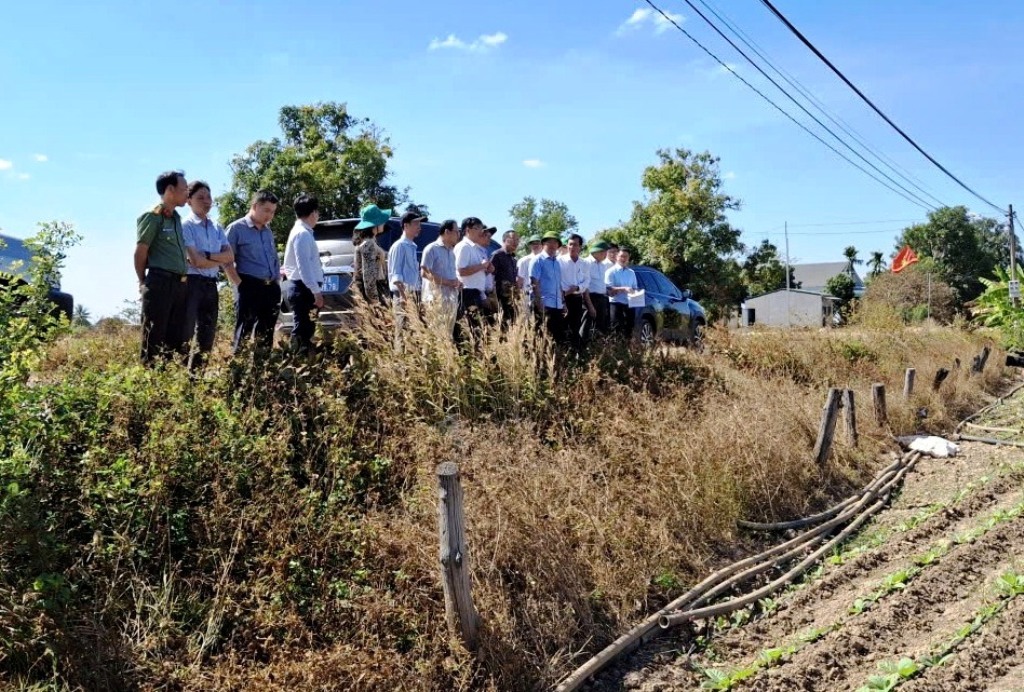 Phó Chủ tịch UBND tỉnh Nguyễn Thiên Văn cùng Đoàn công tác kiểm tra thực địa vị trí dự kiến xây dựng Trường Phổ thông nội trú liên cấp Tiểu học và THCS xã Ea Bung.