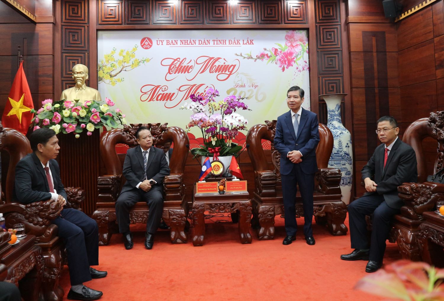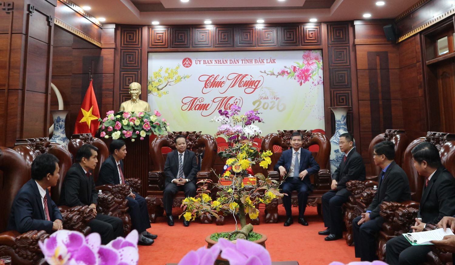 Sáng 09/02/2026, Đoàn Công tác của tỉnh Attapeu - nước Cộng hòa dân chủ nhân Lào do đồng chí Thạ Nu Xay - Băn Sa Lít - Phó Bí thư Tỉnh ủy, Chủ tịch Ủy ban Chính quyền tỉnh làm Trưởng đoàn sang thăm, chúc Tết cổ truyền Việt Nam năm 2026. Về phía tỉnh Đắk Lắk, đồng chí Tạ Anh Tuấn - Phó Bí thư Tỉnh ủy, Chủ tịch UBND tỉnh chủ trì buổi tiếp; lãnh đạo một số sở, ngành tham dự.