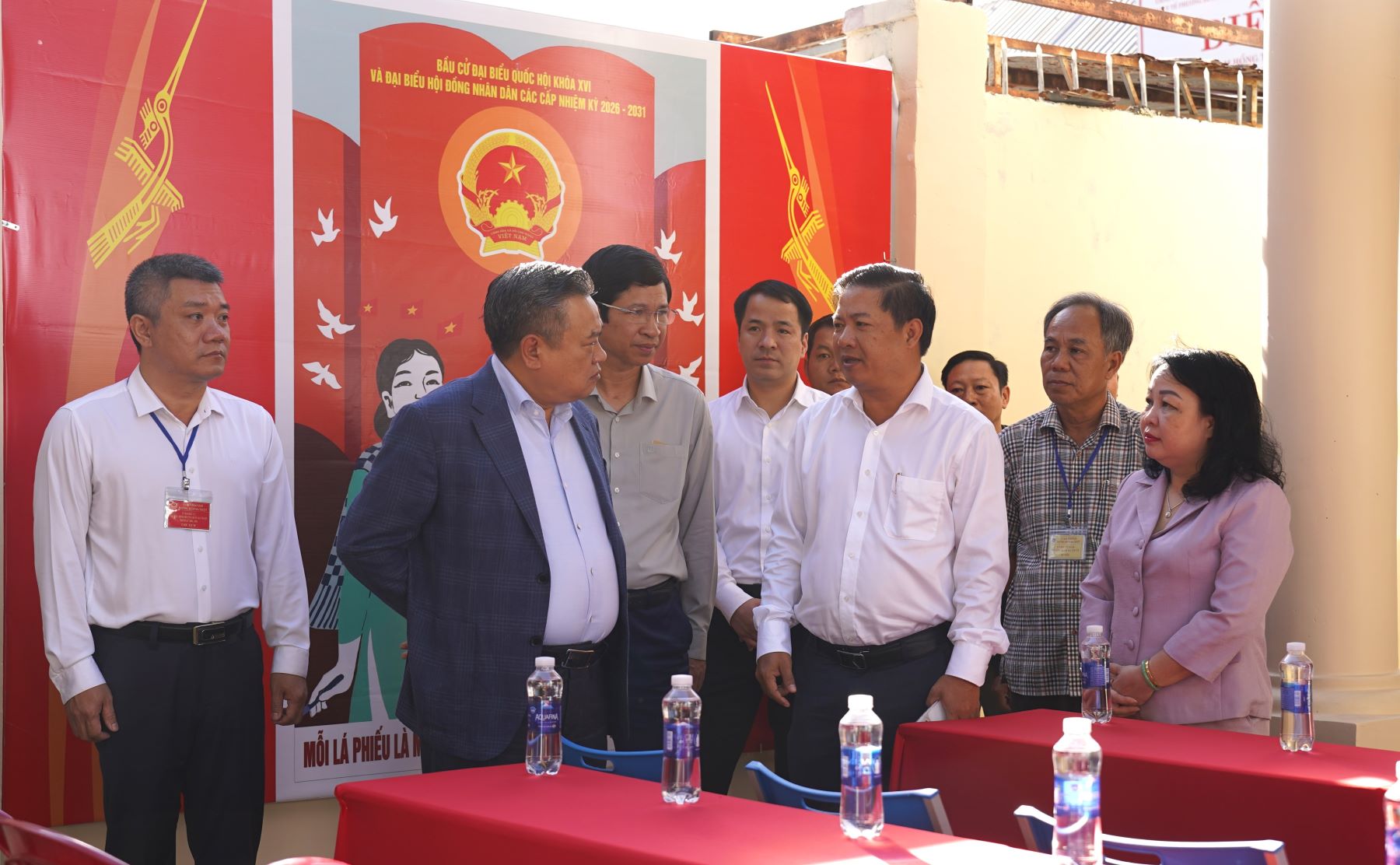 Tại đây, đoàn đã kiểm tra công tác chuẩn bị cơ sở vật chất, niêm yết danh sách cử tri, danh sách ứng cử viên, nội quy phòng bỏ phiếu; kiểm tra, niêm phong thùng phiếu chính, thùng phiếu phụ, việc hướng dẫn cử tri bỏ phiếu…