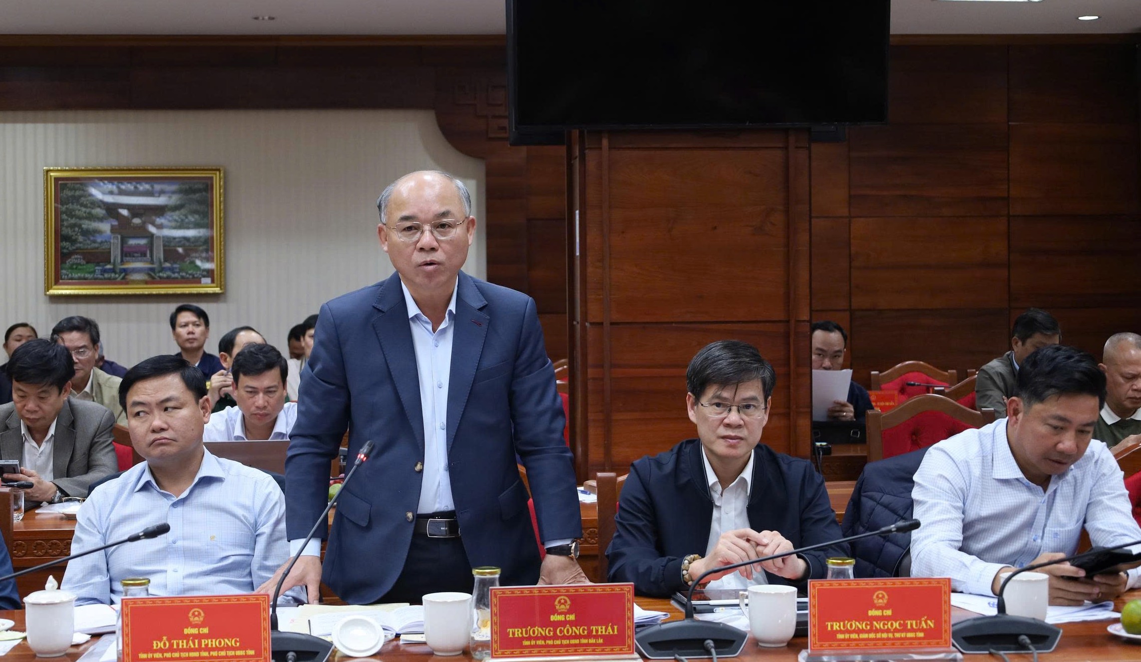 Đồng chí Trương Công Thái – Phó Chủ tịch UBND tỉnh báo cáo với đoàn kiểm tra.