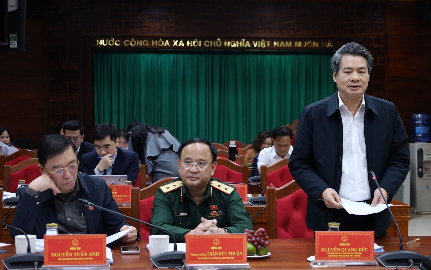 Thời gian tới, đề nghị Ủy ban Bầu cử tỉnh, đặc biệt là Tiểu ban An ninh trật tự và Y tế tăng cường công tác nắm tình hình từ sớm, từ xa về các vấn đề quốc phòng, an ninh, về y tế, dịch bệnh, thiên tai... có tác động đến bầu cử. Những vấn đề tiềm tàng, tiềm ẩn có thể phát sinh như: phòng cháy chữa cháy, an ninh; đẩy mạnh công tác tuyên truyền, phát huy vai trò lực lượng an ninh trật tự ở cơ sở và lực lượng dân quân tự vệ. Công an tỉnh và Bộ chỉ huy Quân sự tỉnh phân công nhân sự xuống địa bàn bố trí gần dân, nắm tâm tư nguyện vọng của dân để kịp thời xử lý vấn đề thực tiễn.