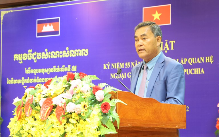 Tại Chương trình, các đại biểu đã cùng nhau ôn lại kỷ niệm 55 thiết lập quan hệ ngoại giao Việt Nam - Campuchia. Ngày 24/6/1967, Việt Nam và Campuchia chính thức thiết lập quan hệ ngoại giao. Đây là một sự kiện lịch sử trọng đại, đánh dấu một bước phát triển mới, khẳng định sự gắn bó của hai dân tộc láng giềng Việt Nam - Campuchia, luôn kề vai sát cánh, gắn bó đoàn kết, giúp đỡ hỗ trợ lẫn nhau trong công cuộc đấu tranh giành độc lập dân tộc; cùng nhau hợp tác xây dựng, phát triển kinh tế - xã hội nhằm đưa tình đoàn kết hữu nghị truyền thống giữa hai nước lên một tầm cao mới vì lợi ích của nhân dân hai nước và đóng góp tích cực cho hòa bình, ổn định và hợp tác phát triển trong khu vực với phương châm: “Láng giềng tốt đẹp - Hữu nghị truyền thống - Hợp tác toàn diện - Bền vững lâu dài.”