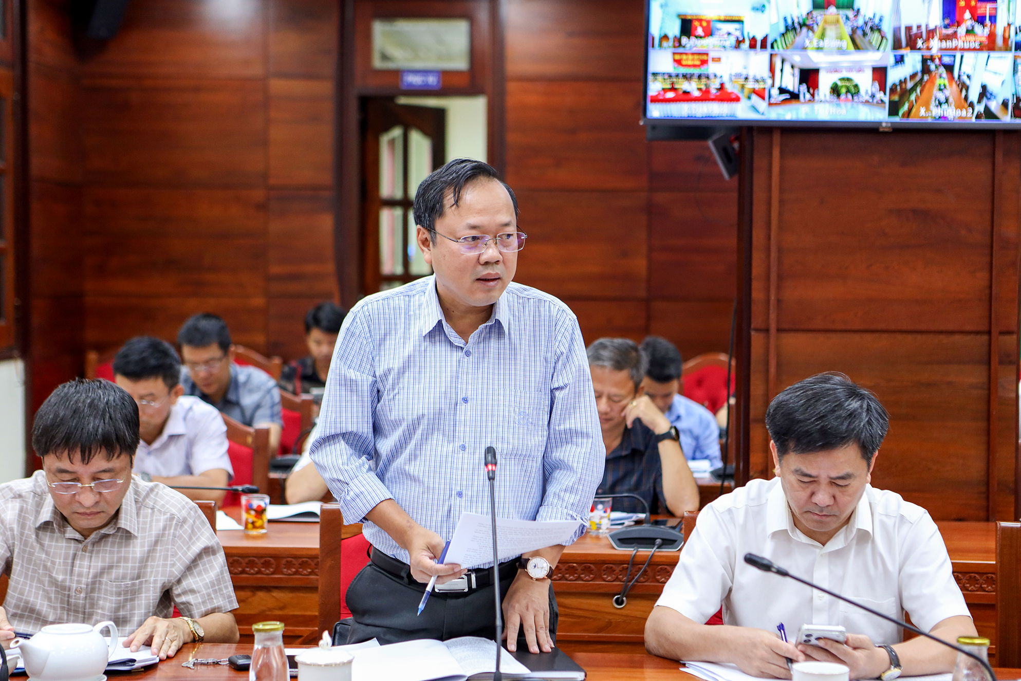 Đồng chí Nguyễn Thiên Văn - Phó Chủ tịch UBND tỉnh phát biểu tại cuộc họp.