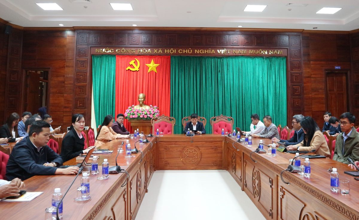 Đại biểu tham dự hội nghị tại điểm cầu Đảng bộ Văn phòng UBND tỉnh (Bích Luy).