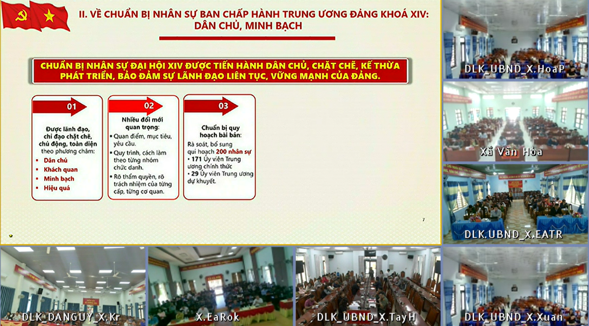 Hội nghị được tổ chức trực tuyến xuống các điểm cầu đảng bộ xã, phường (Minh Vũ).