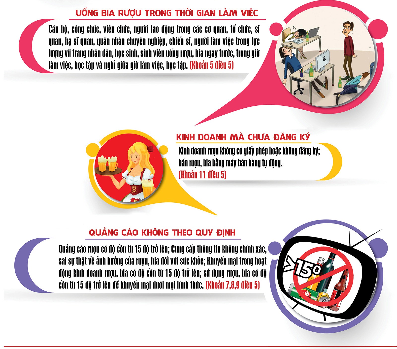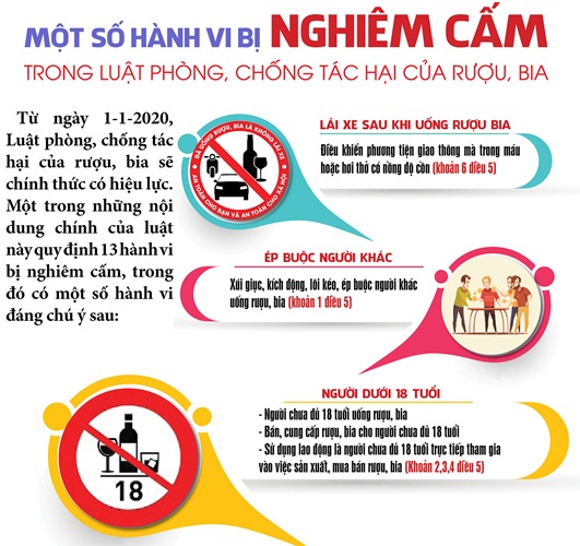 - Phổ biến, tuyên truyền Luật Phòng, chống tác hại của rượu, bia và các văn bản quy định, hướng dẫn thi hành có liên quan thông qua lồng ghép chuyên đề trong các hội nghị, lớp tập huấn, cập nhật kiến thức pháp luật mới theo kế hoạch công tác phổ biến, giáo dục pháp luật hàng năm của các đơn vị, địa phương.