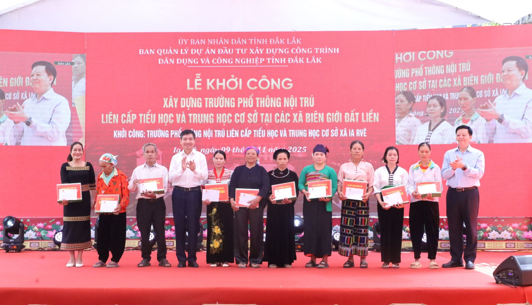 Sáng 9/11, tại xã biên giới Ia Rvê, tỉnh Đắk Lắk đã diễn ra Lễ khởi công xây dựng Trường Phổ thông nội trú liên cấp tiểu học và THCS Ia Rvê.