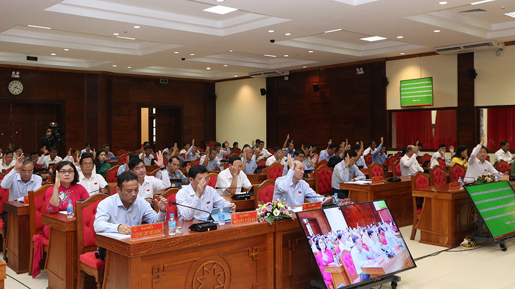 Đại biểu biểu quyết thông qua Nghị quyết tại kỳ họp |