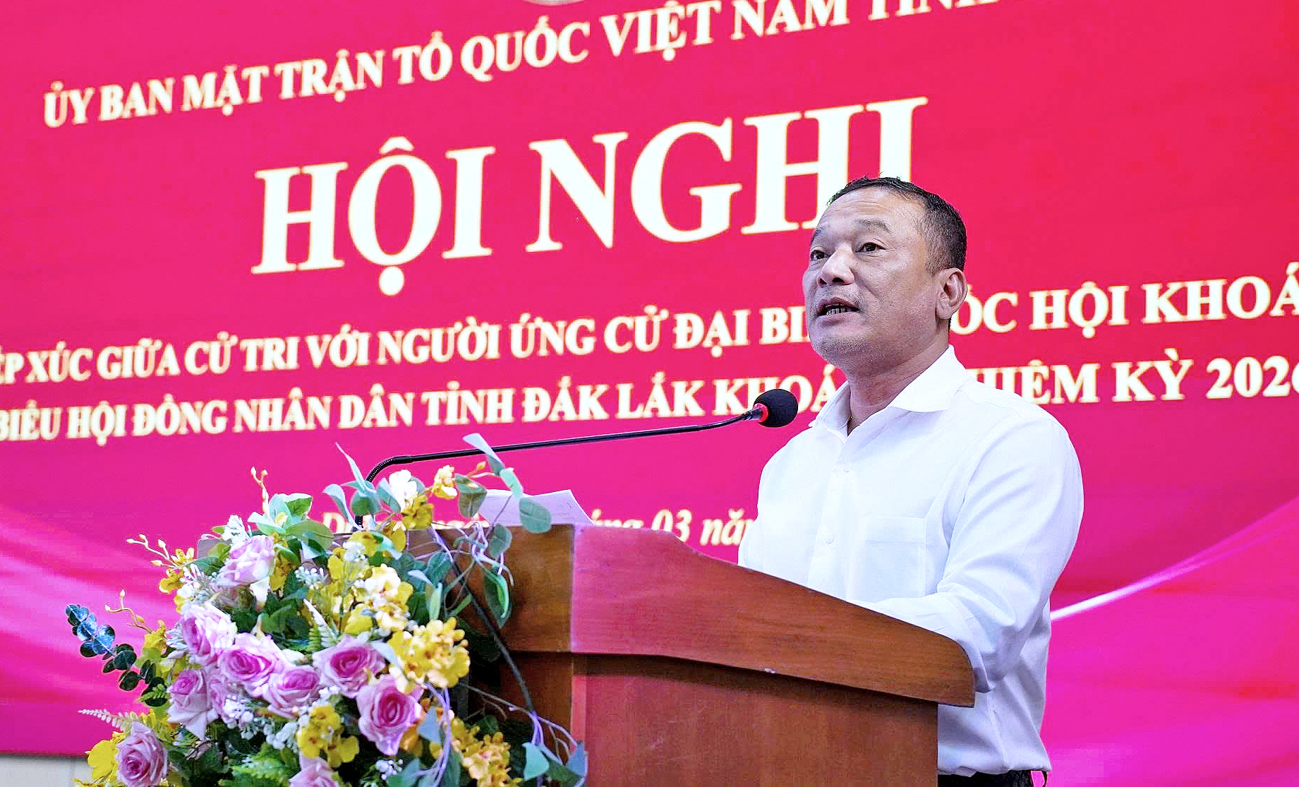 Tại hội nghị, đại diện Ủy ban MTTQ Việt Nam tỉnh Đắk Lắk đã thông tin tới cử tri tiểu sử tóm tắt của người ứng cử đại biểu Quốc hội và HĐND tỉnh.
