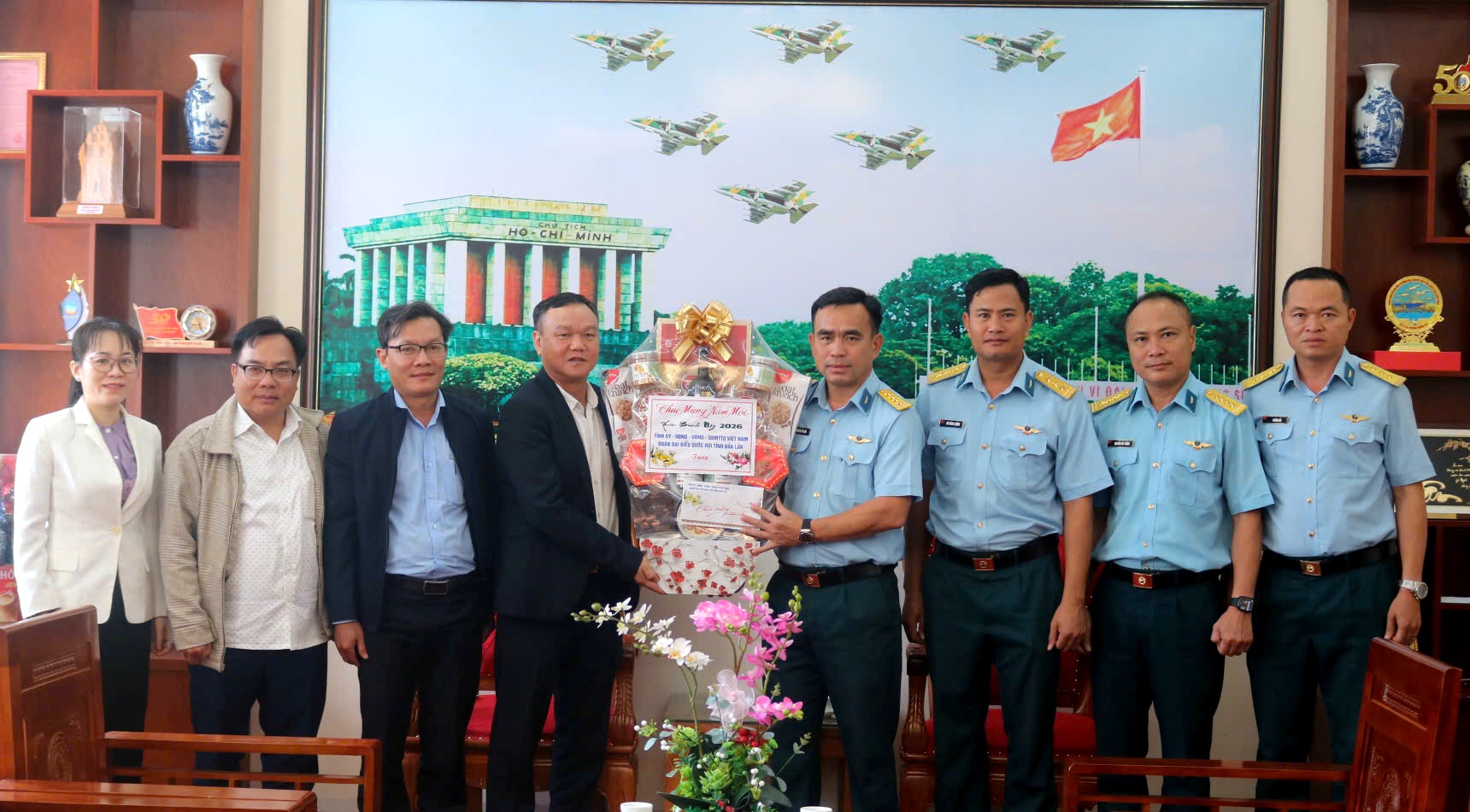 Sáng 9/2, Đoàn công tác của Tỉnh ủy, HĐND, UBND, Ủy ban MTTQ Việt Nam và Đoàn ĐBQH tỉnh Đắk Lắk do đồng chí Đào Mỹ - Phó Chủ tịch UBND tỉnh làm Trưởng đoàn đã đến thăm, chúc Tết và tặng quà Trung đoàn Không quân 910; Trung đoàn Không quân 940/Trường Sĩ quan Không quân; Trung đoàn BB888 và Trạm ra đa 68.