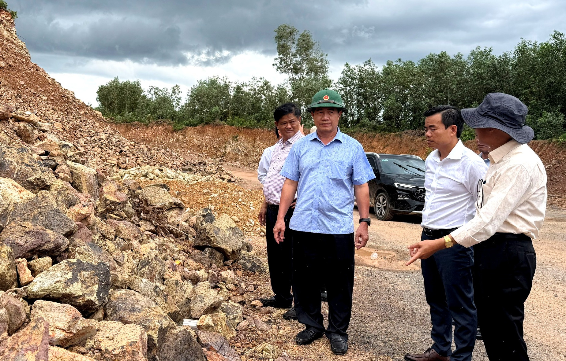Phó Chủ tịch UBND tỉnh Nguyễn Thiên Văn kiểm tra thực địa tại mỏ đá xây dựng (xã Hòa Xuân).