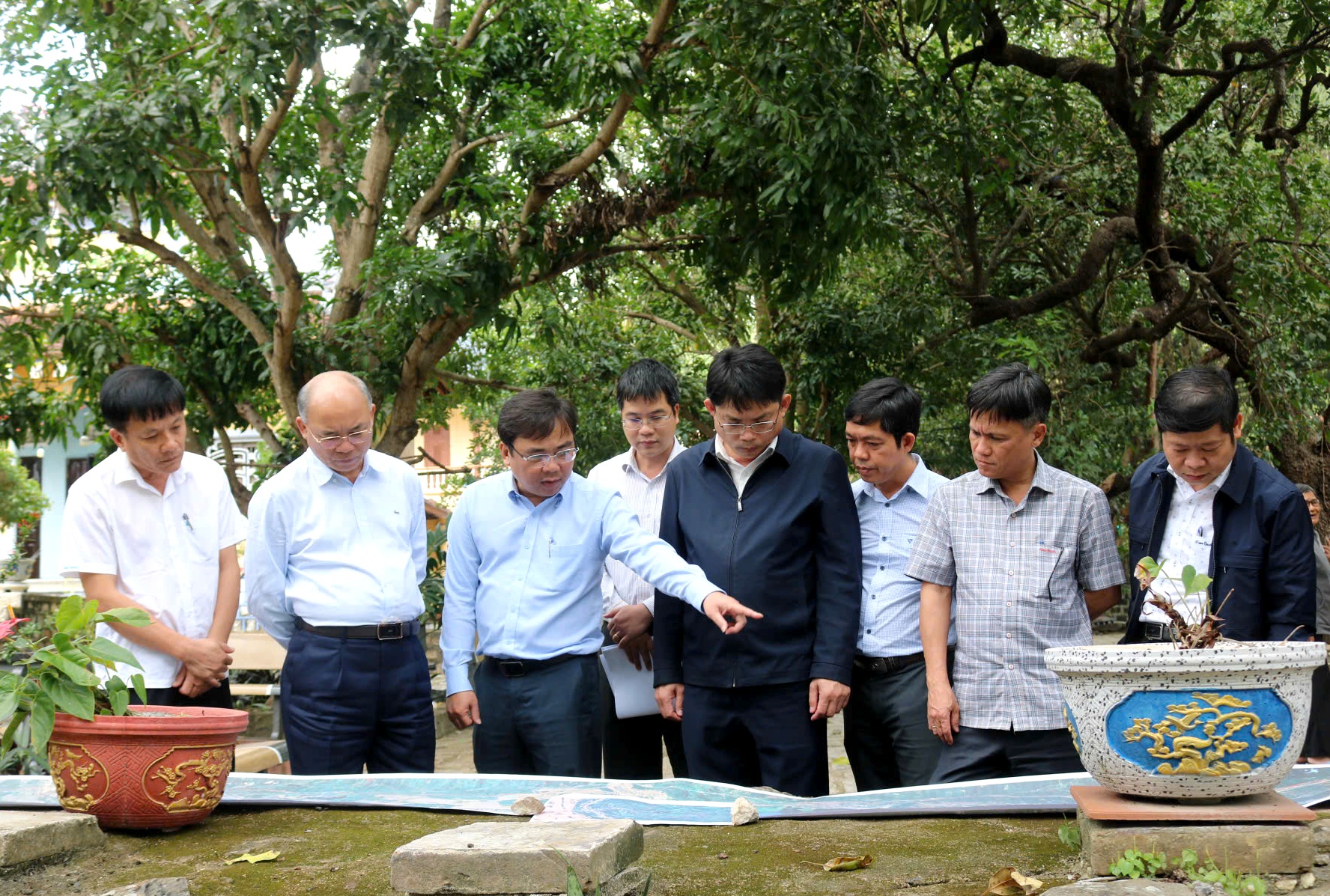 Phó Chủ tịch UBND tỉnh Trương Công Thái kiểm tra một điểm bị ảnh hưởng giải phóng mặt bằng Dự án đường sắt tốc độ cao trên trục Bắc - Nam.