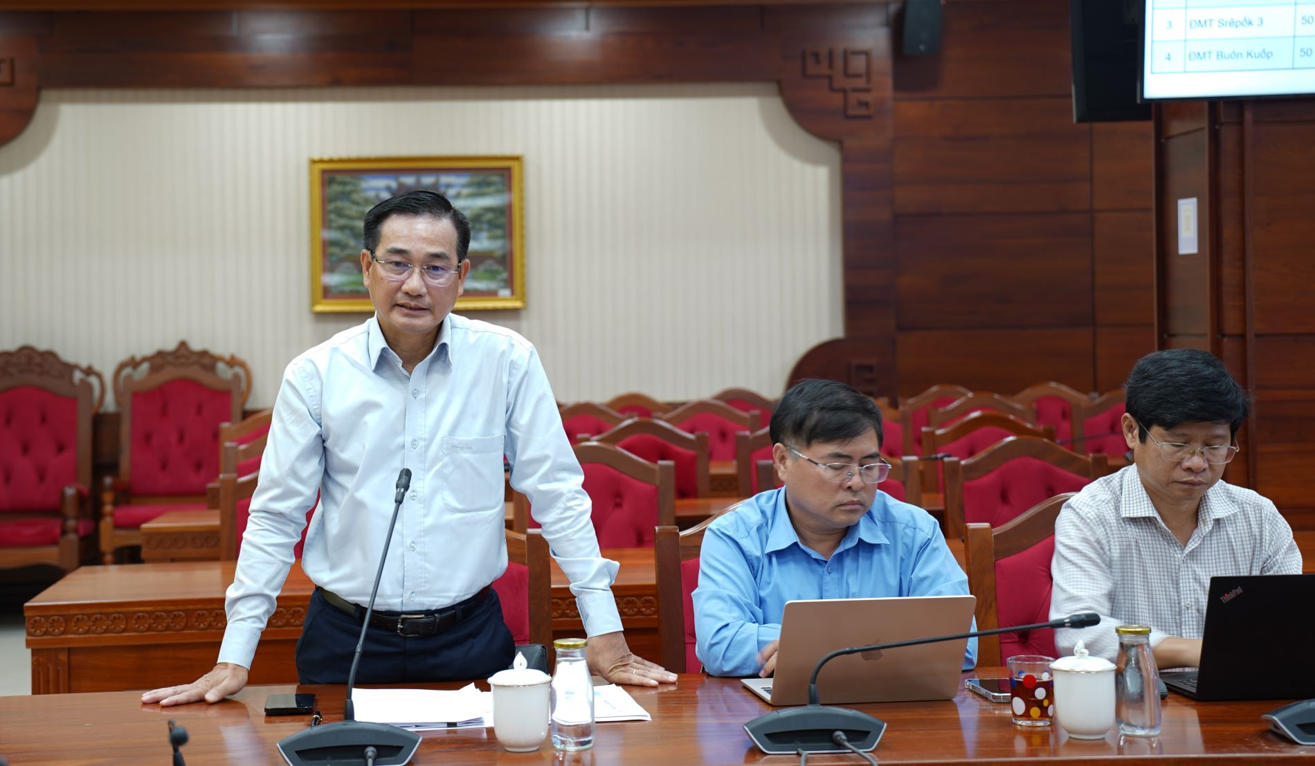 Tại cuộc họp, đại diện Tổng Công ty Phát điện 3 đã thông tin cơ bản về các dự án nguồn điện trên địa bàn tỉnh như: Dự án Thủy điện Srêpốk 3 mở rộng; Dự án Thủy điện Buôn Kuốp mở rộng; Dự án Nhà máy điện mặt trời trên hồ thủy điện Srêpốk 3 và Dự án Nhà máy điện mặt trời trên hồ Buôn Kuốp.