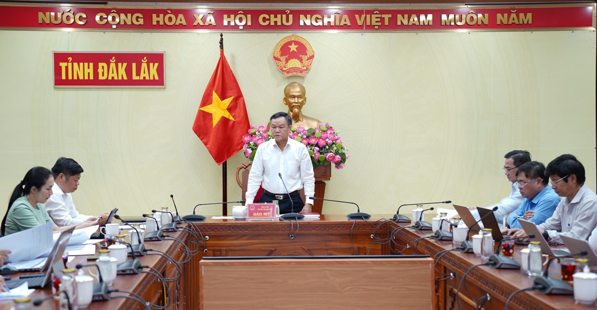 Chiều 24/3, UBND tỉnh Đắk Lắk tổ chức cuộc họp nhằm xem xét, tháo gỡ khó khăn, vướng mắc đối với các dự án nguồn điện trên địa bàn tỉnh. Phó Chủ tịch UBND tỉnh Đào Mỹ chủ trì cuộc họp.