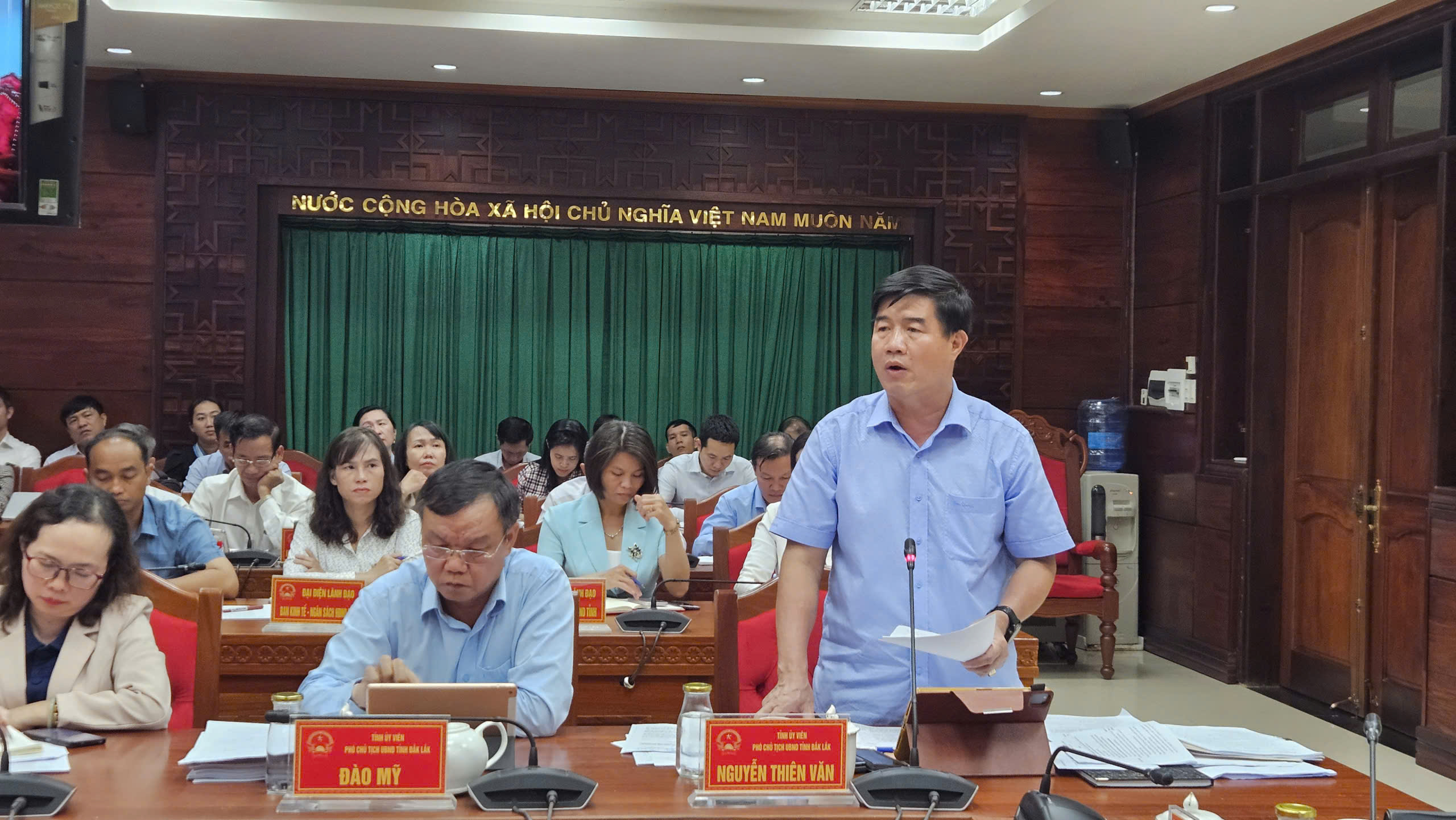 Phó Chủ tịch UBND tỉnh Nguyễn Thiên Văn tham gia ý kiến tại Phiên họp.