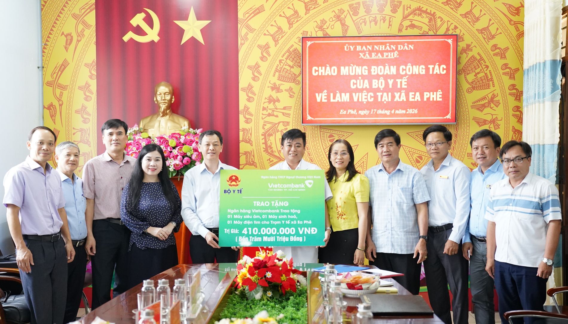 Dịp này, Đoàn công tác của Bộ Y tế đã tặng các thiết bị y tế gồm: 01 máy siêu âm, 01 máy sinh hóa, 01 máy điện tim cho Trạm y tế xã Ea Phê trị giá 410 triệu đồng.