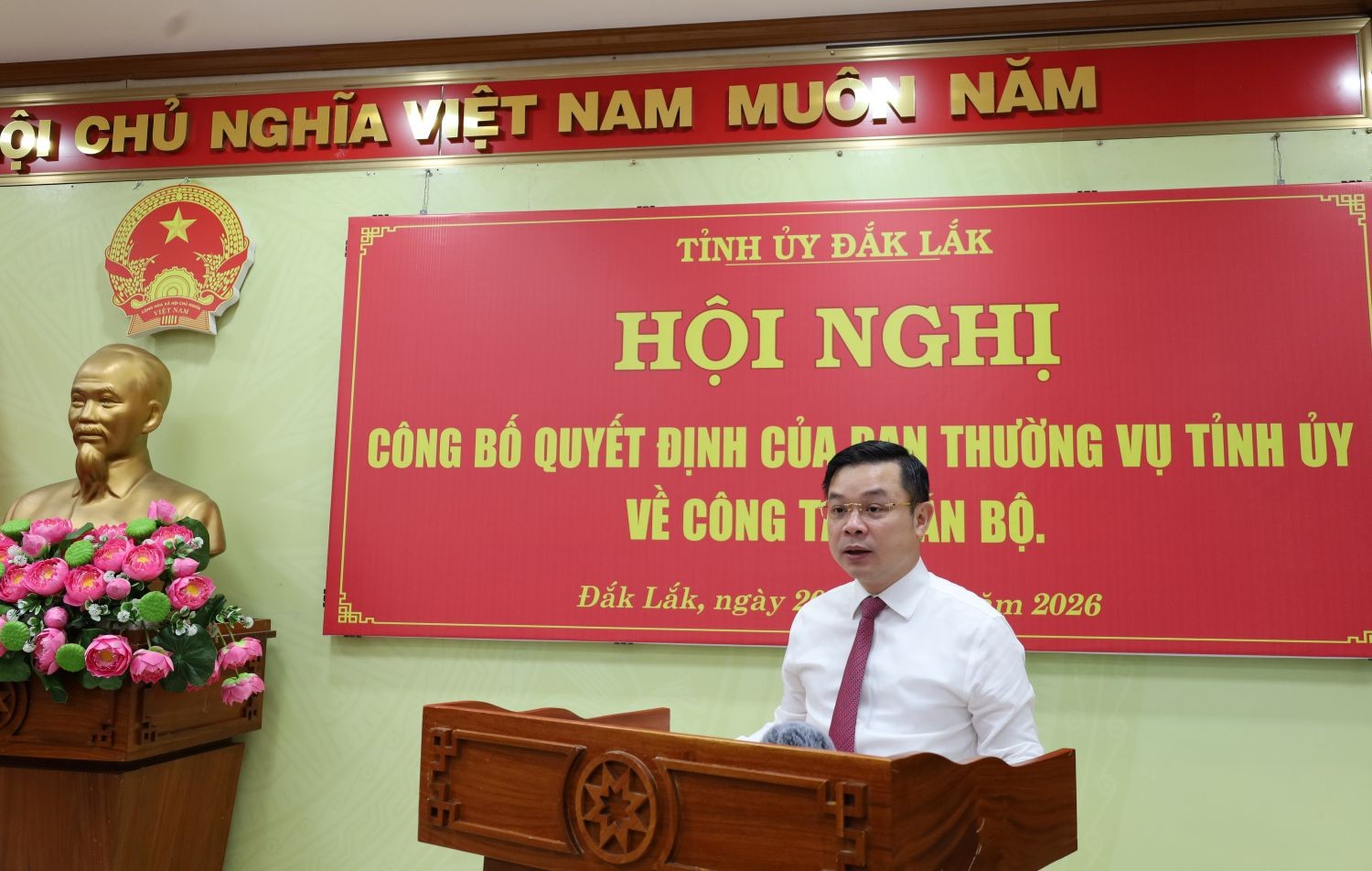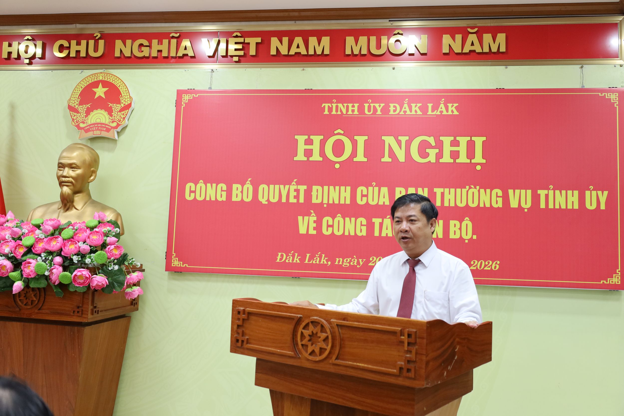 Sáng 20/3, Tỉnh ủy Đắk Lắk tổ chức Hội nghị công bố quyết định của Ban Thường vụ Tỉnh ủy về công tác cán bộ.