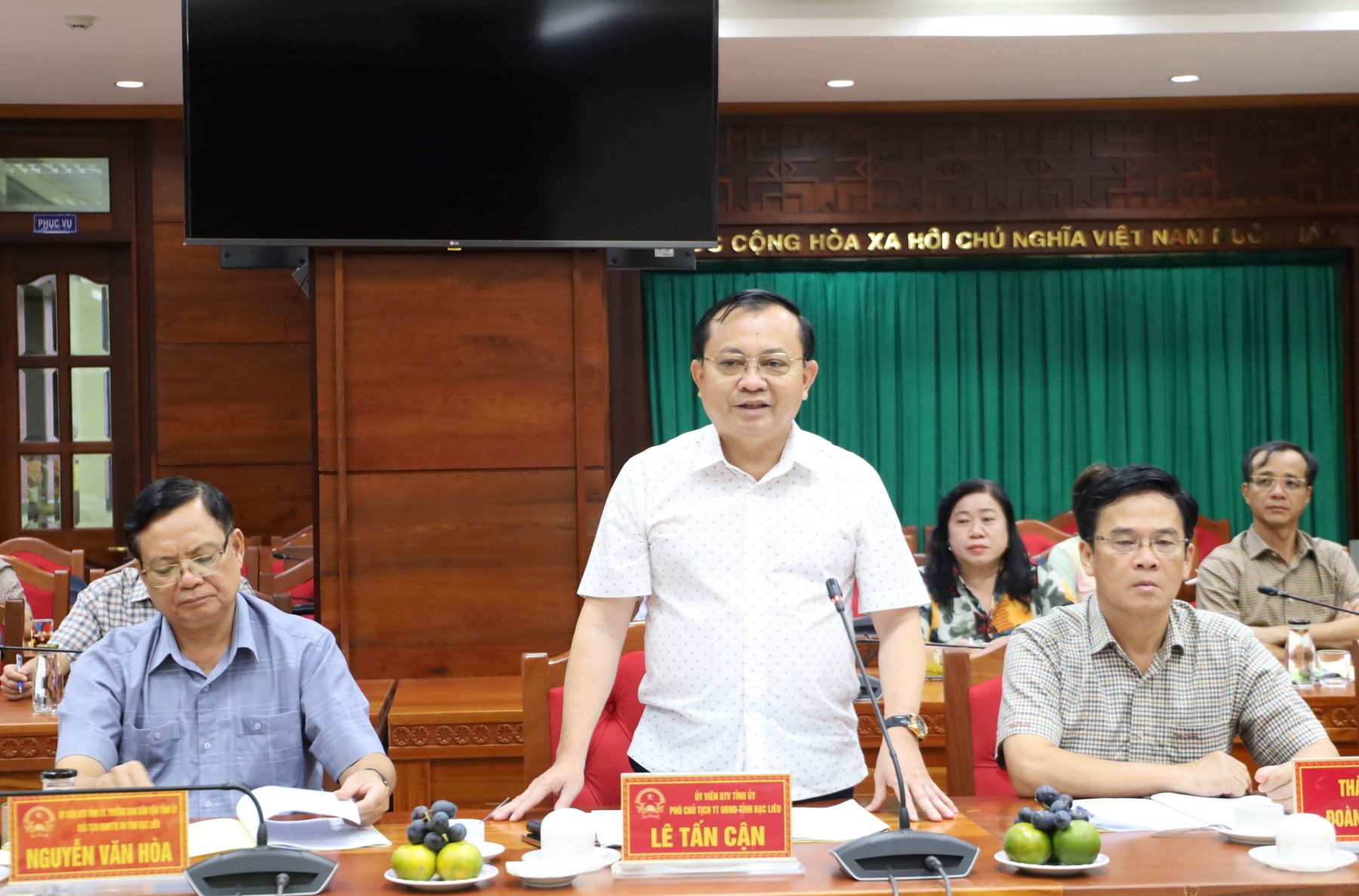 Phó Chủ tịch Thường trực UBND tỉnh Bạc Liêu Lê Tấn Cận phát biểu tại buổi làm việc |