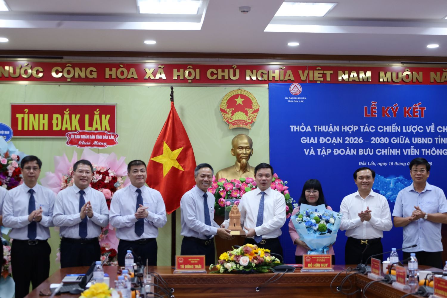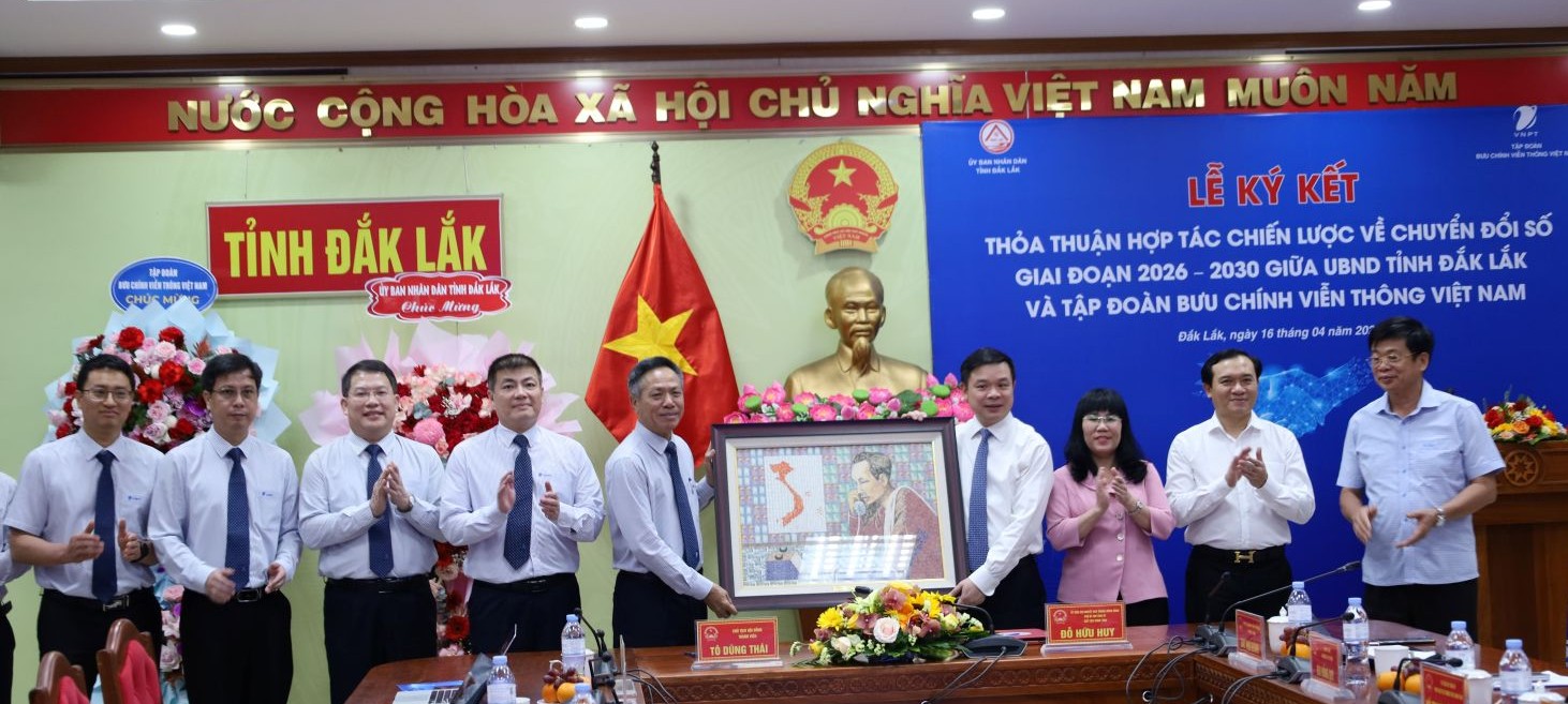Chiều 16/4, UBND tỉnh Đắk Lắk đã tổ chức Lễ ký kết thỏa thuận hợp tác về chuyển đổi số tỉnh Đắk Lắk giai đoạn 2026 – 2030, định hướng đến năm 2035 với Tập đoàn Bưu chính Viễn thông Việt Nam (Tập đoàn VNPT).