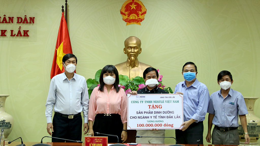 | Công ty Nestle Việt Nam tại Tây Nguyên trao tặng ngành Y tế tỉnh Đắk Lắk hiện vật là các sản phẩm dinh dưỡng của công ty |