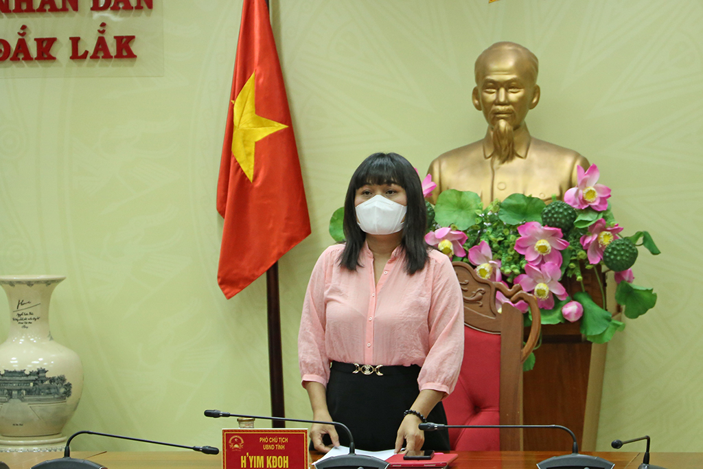 | Phó Chủ tịch UBND tỉnh H’ Yim Kđoh – Phó Trưởng Ban Chỉ đạo Phòng, chống dịch COVID-19 tỉnh chủ trì buổi tiếp nhận |