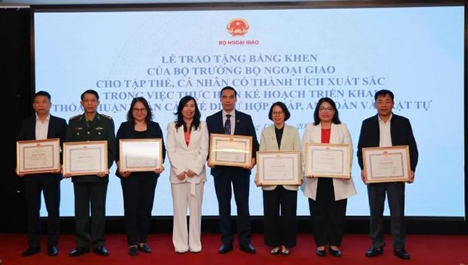 Trong khuôn khổ Hội nghị, Lãnh đạo Bộ Ngoại giao đã trao tặng Bằng khen Bộ trưởng Bộ Ngoại giao cho những tập thể, cá nhân có thành tích xuất sắc trong việc thực hiện Kế hoạch triển khai Thỏa thuận GCM giai đoạn 2020-2025.